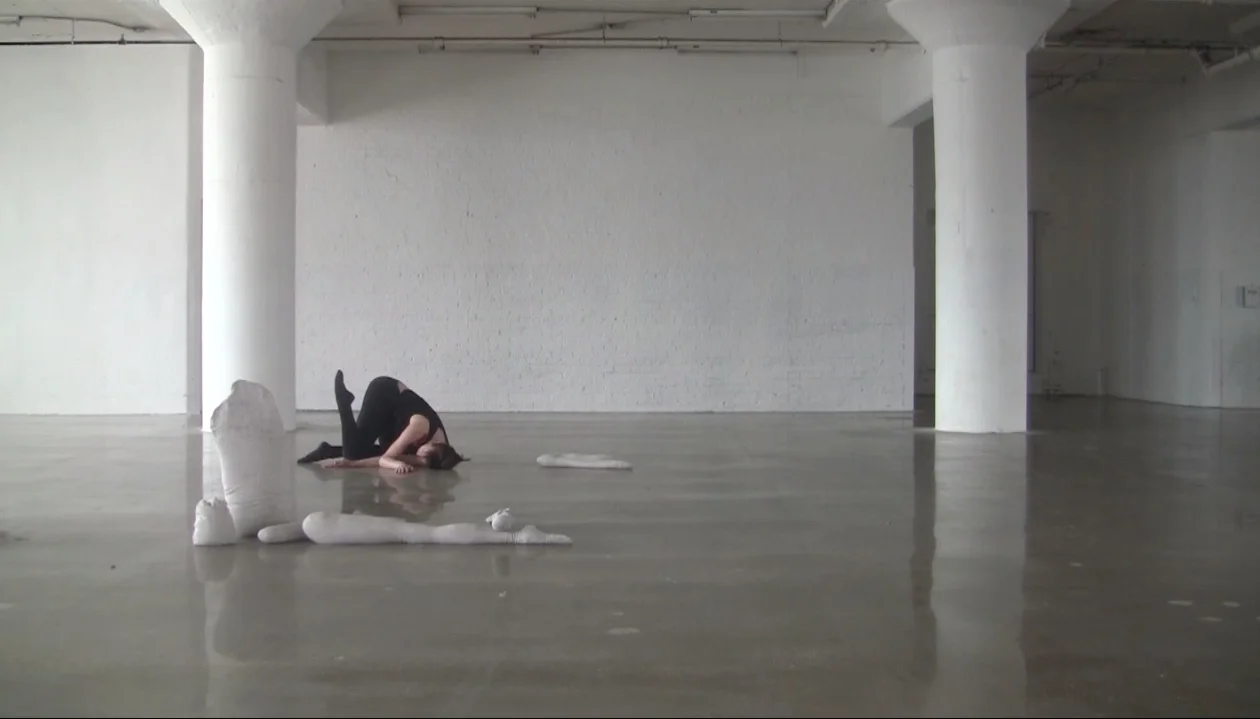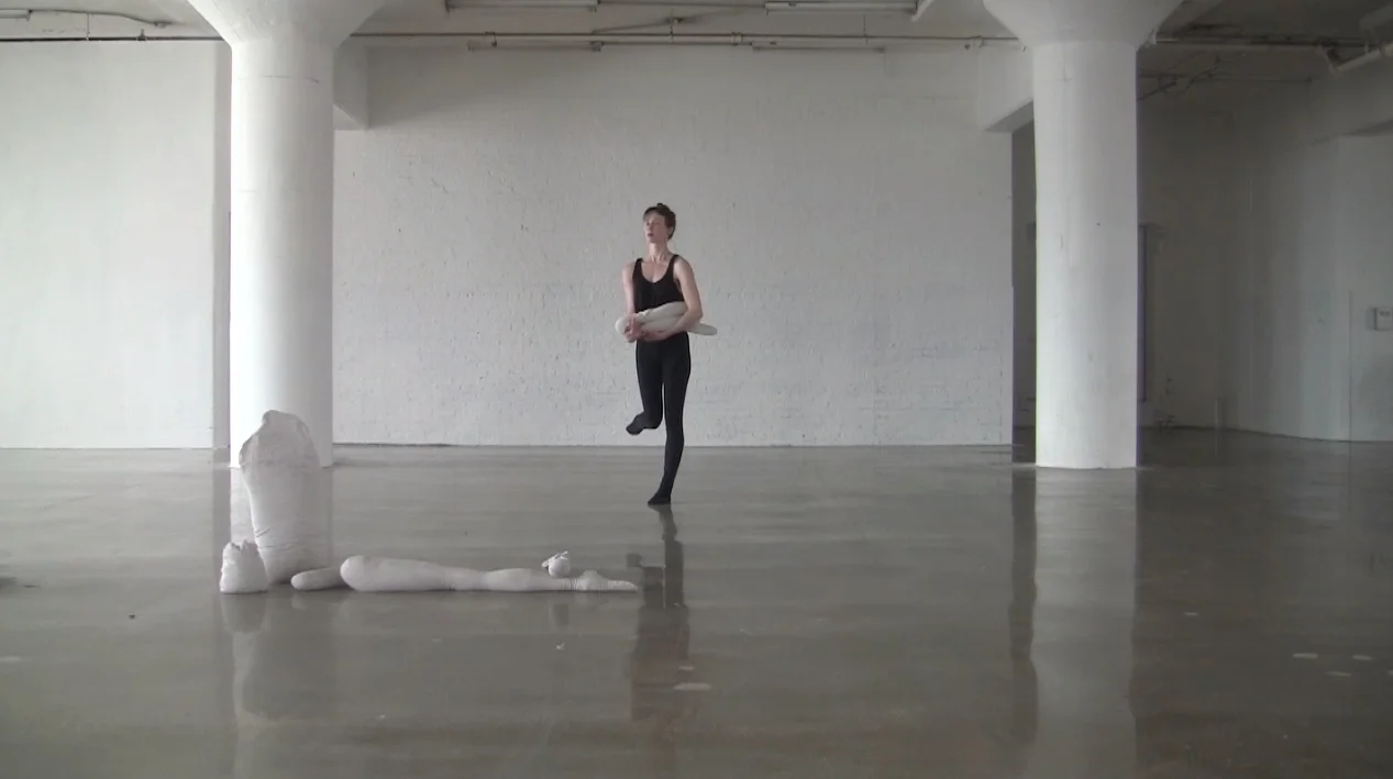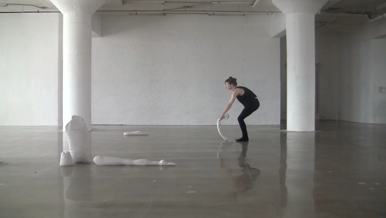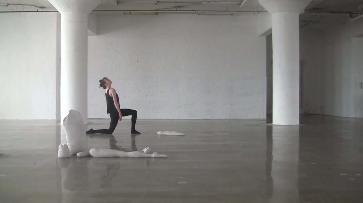 A dancer weighs, drags, swings, suspends a series of objects, a fragmented body, her own body. Up to the Elbows is a solo in which I contend with a kind of double of myself: six sand-filled sculptures that imitate the general size and shape of my body; their total sum also equals my weight. This scenario grew out of my fascination with amateur inventions for personal, wearable flying machines from the early 20th century, as well as the ways in which such inventors had to be painstakingly aware of the body’s weight and attributes when attempting to achieve something as fantastical and unlikely as flight.